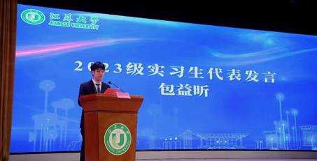 数学与应用数学(师范)2303班包益昕作为2023级实习生代表发言,表示将牢记师范生使命,严守规章制度,以良好风貌完成实习任务。
